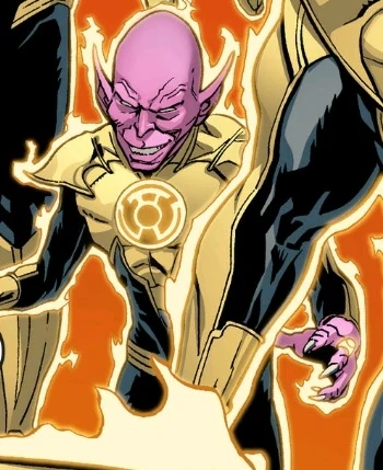 Gleen is an extraterrestrial goblin wearing the standard Sinestro Corps uniform, with his ring on his left hand.